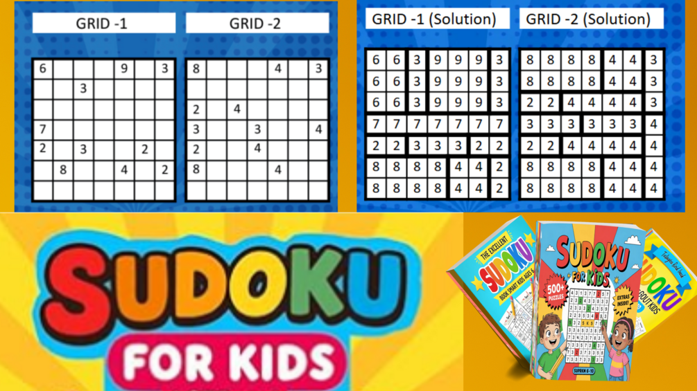 Sudoku Puzzle Book for Kids Ages 6 7 8 9 10 with Easy Medium Hard Puzzles and Solutions Included - Fun Brain Game Activity Book